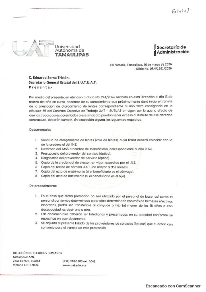 Referente a la prestación de lentes correspondiente al año 2026, se informa que el periodo para hacer uso de este beneficio iniciará a partir del 20 de abril.